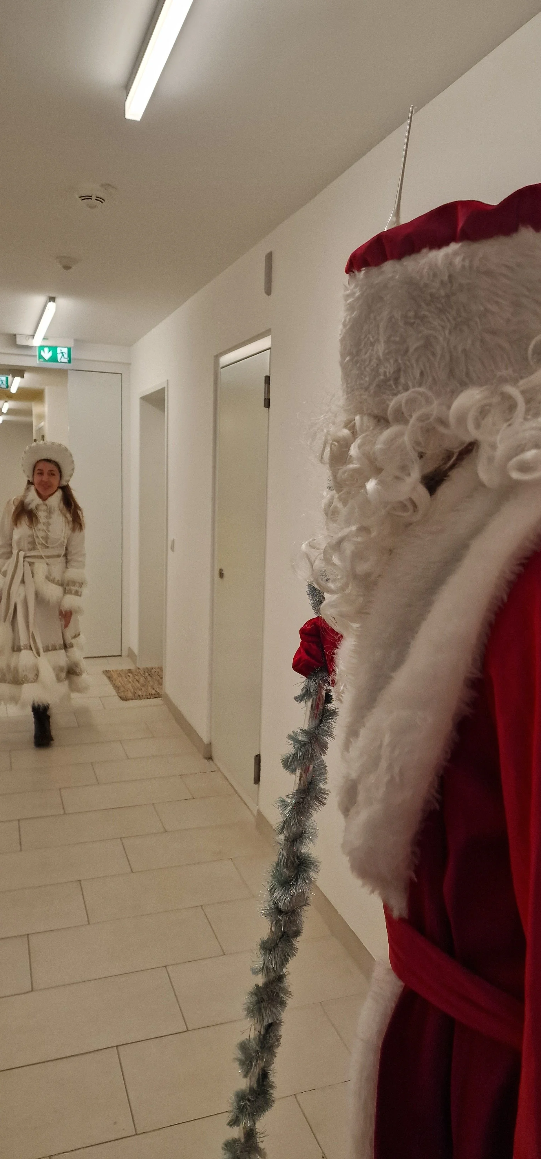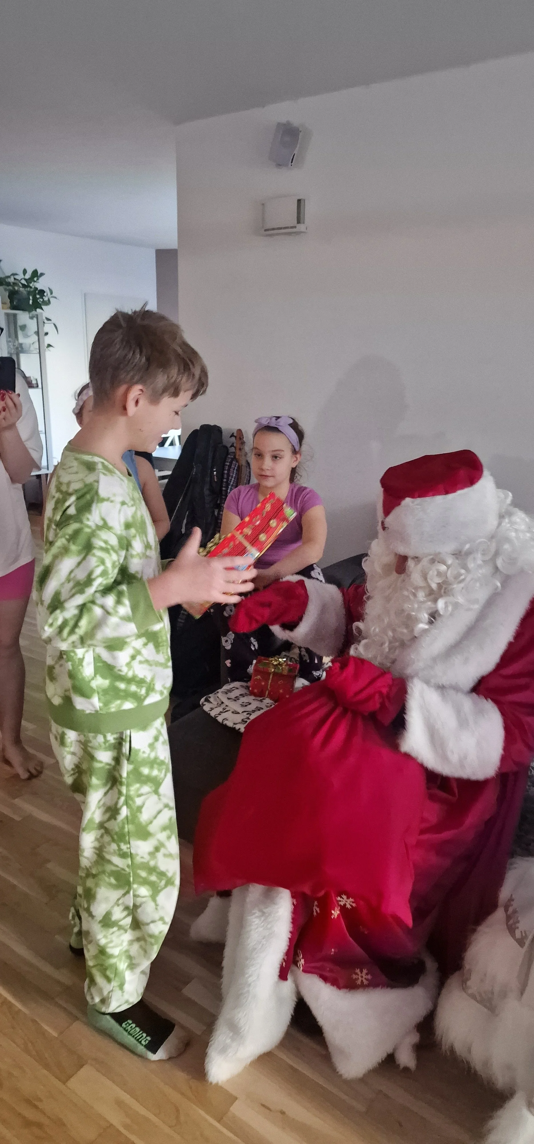 Fotos von der Geschenkübergabe, dem Besuch des Weihnachtsmanns und der festlichen Atmosphäre.